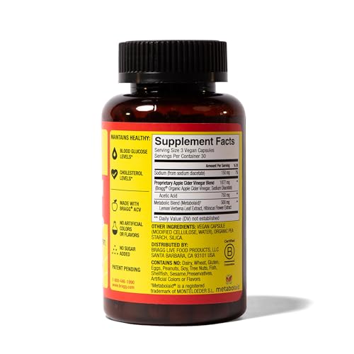 Specification: Bragg Metabolism Support Apple Cider Vinegar Capsules with Botanical Blend – 90 Capsules – Increased GLP-1 Support for Weight Management, Appetite Control, and Fullness